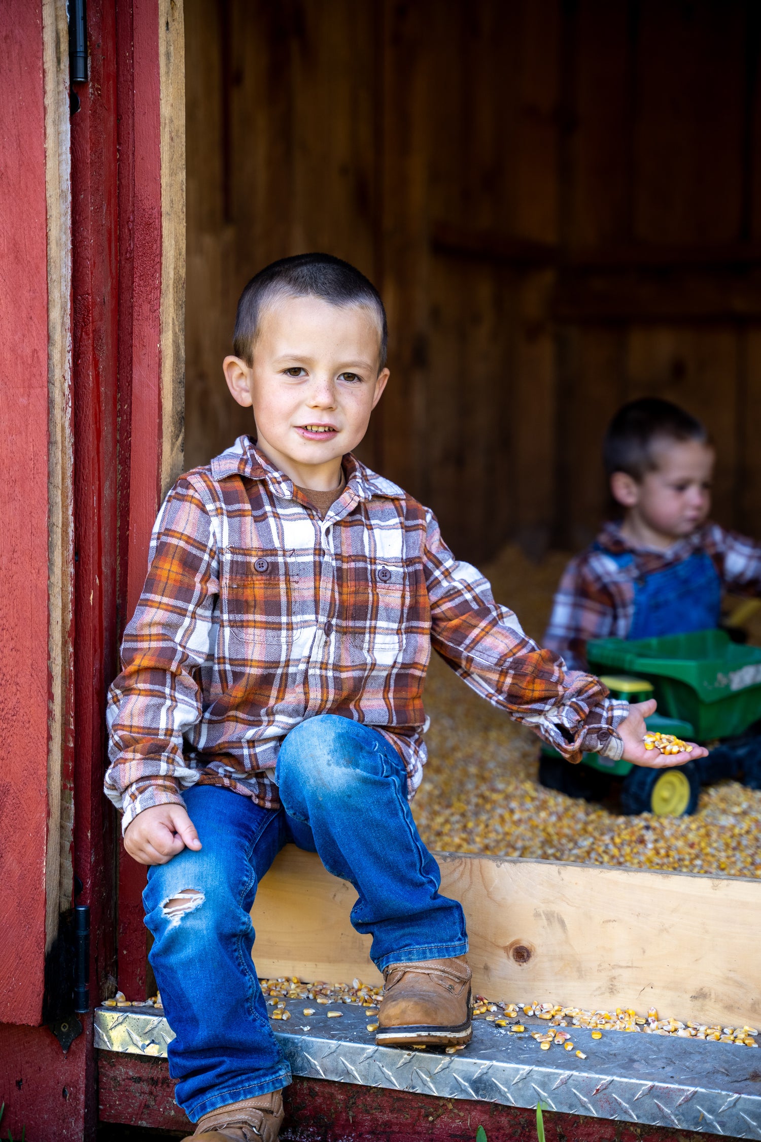Dawson is 5 years old. He loves working with his dad, fixing equipment, and everything to do with pumpkins. He is obsessed with wild animals. When he is not on the farm he loves fishing and hanging with "the guys".