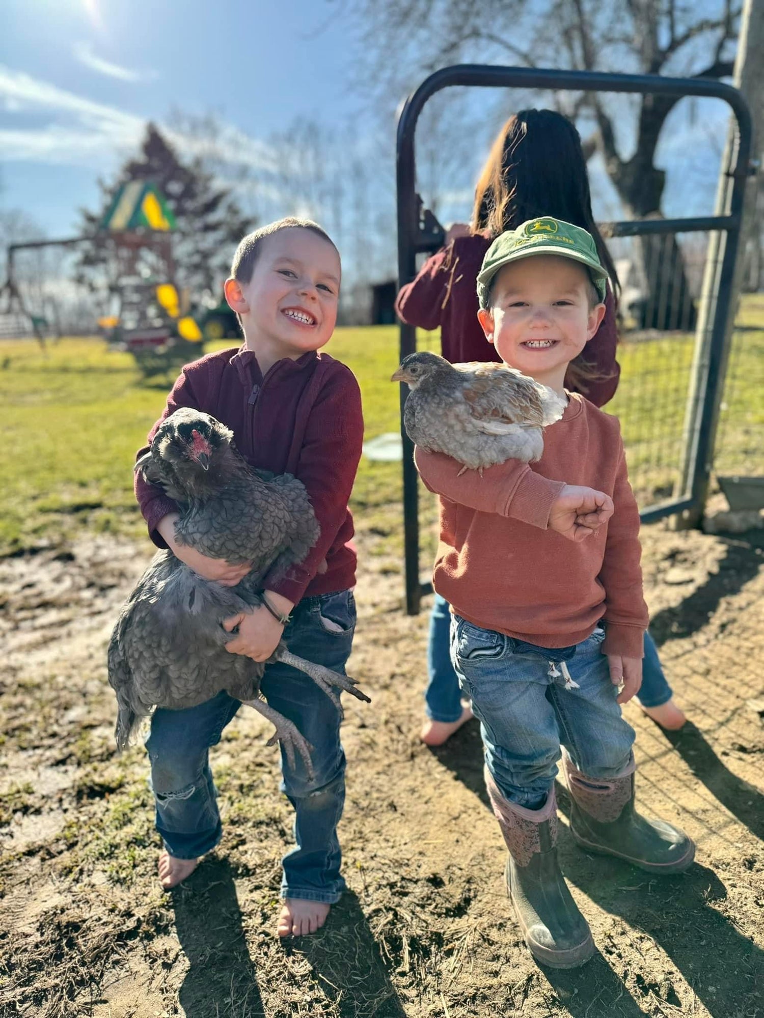 Chickens play a very important role here on the farm. We raise a variety of egg-laying hens that provide us with a steady, reliable source of fresh eggs. Our flock is free-ranging and well-loved, contributing to both the health of our land and the nourishment of our family.